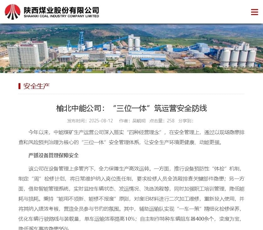 9月17日,陜西煤業(yè)監(jiān)事會主席賀兵奇到中能公司開展安全生產(chǎn)包保調(diào)研督導(dǎo)。公司黨委書記、董事長、總經(jīng)理雷亞軍,總工程師楊彪一同調(diào)研。會上,公司及中能公司匯報了2025年前三季度安全生產(chǎn)、經(jīng)濟運行情況及四季度重點工作安排,并就重大風(fēng)險分析研判及管控措施落實、重要時段...